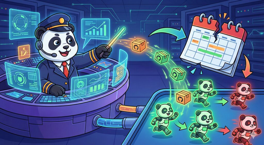 A GitHub Actions workflow orchestrator that dispatches jobs based on runner availability to optimize infrastructure utilization.